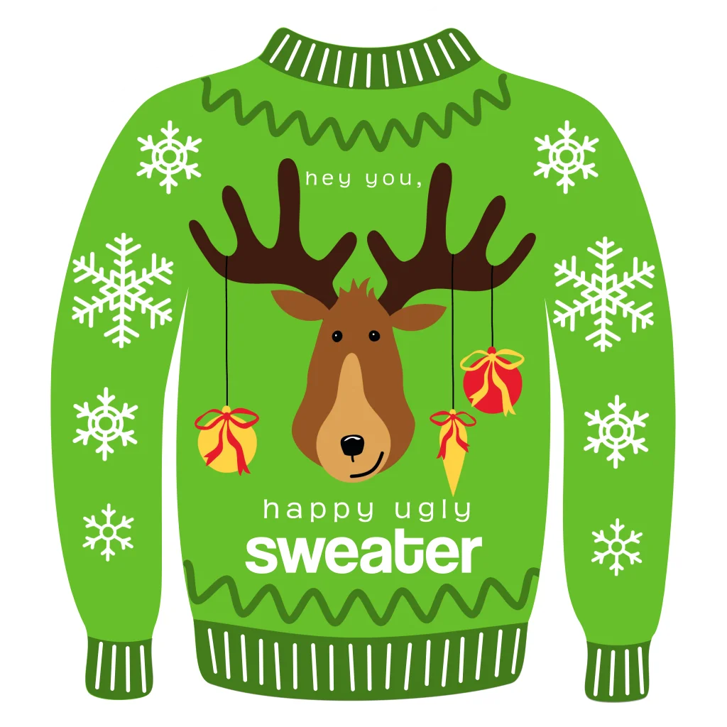 Happy ugly sweater! Hoe leuk is deze originele kerstkaart in de vorm van een kersttrui?! Verras familie en vrienden met deze leuke en bijzondere kerstkaart. Voeg jouw eigen tekst toe en maak deze kaart persoonlijk. Hulp nodig? We helpen je graag.