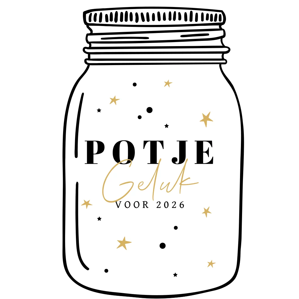 Stuur jullie familie en vrienden een potje met geluk voor het nieuwe jaar. Een bijzondere kerstkaart in de vorm van een potje. Stuur deze originele kaart en verras jullie familie en vrienden met dit potje vol geluk.