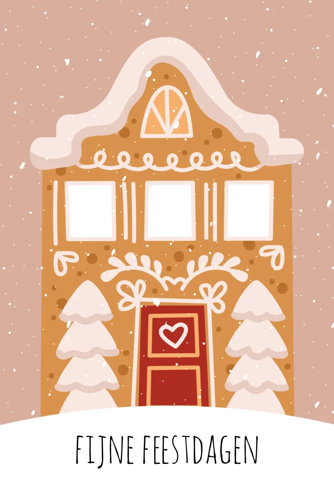 Zijn jullie verhuisd? Wens met deze originele kerstkaart je vrienden en familie fijne feestdagen en verstuur gelijk je verhuisbericht. Een verhuiskaart en kerstkaart in één dus! Je ziet een huisje in de sneeuw en de ramen hebben een doorkijkje naar de binnenkant van de kaart. Zet hier je eigen foto in van bijvoorbeeld je gezinsleden. Pas deze kaart naar eigen wens aan in onze online editor en maak de kaart helemaal af met een mooi envelop. De warme kleuren en illustraties maken deze kaart ideaal voor het versturen van je kerstgroeten aan vrienden en familie.