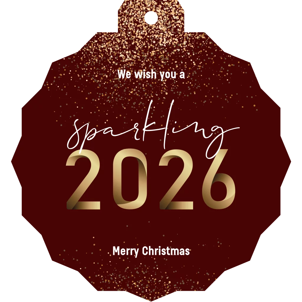 Vier de feestdagen in stijl met deze unieke zakelijke kerstkaart in de vorm van een sprankelende geometrische kerstbal. Wens met deze originele kerstkaart je medewerkers, klanten en zakelijke relaties fijne feestdagen en een schitterend 2026. De aparte vorm van deze kaart maakt het een bijzondere keuze die zeker indruk zal maken. Pas de tekst en kleuren naar je eigen wensen aan in de editor. Hulp nodig? We helpen je er graag bij.