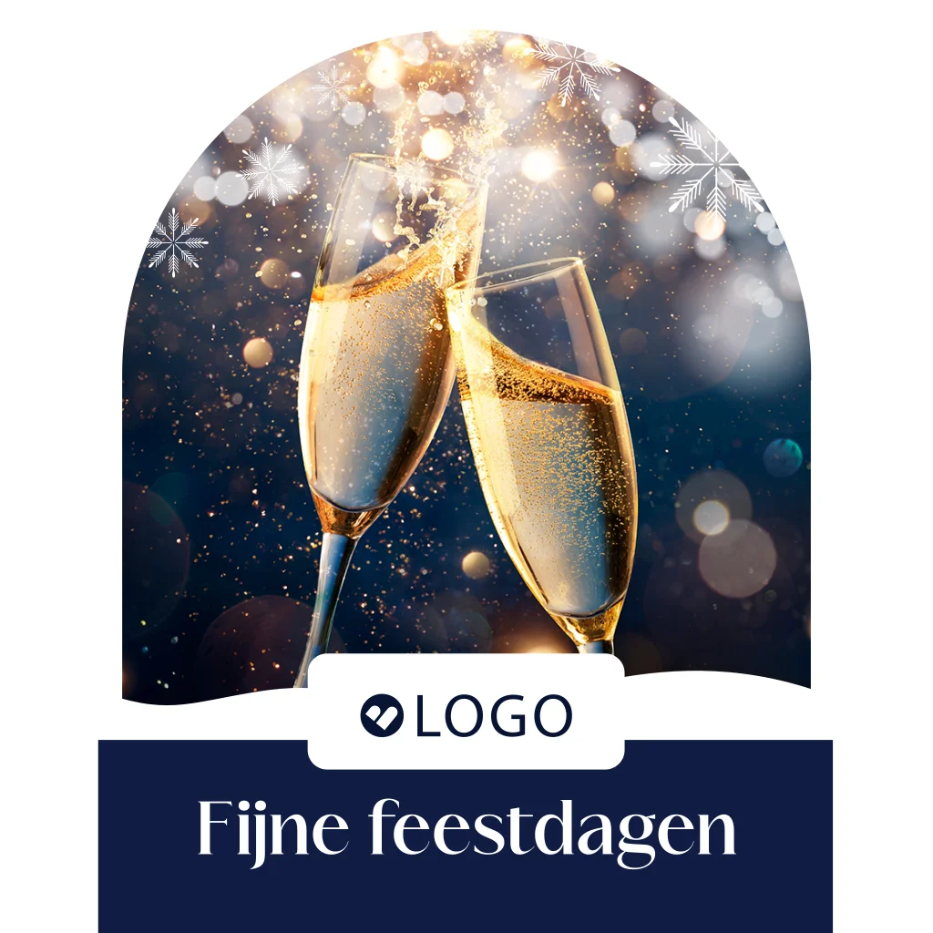Op zoek naar een unieke zakelijke kerstkaart? Kies dan voor deze kaart in een sneeuwbol vorm. De combinatie van donkerblauw en goud zorgt voor een chique uitstraling die perfect past bij de feestdagen. Op deze kaart zie je een foto van sprankelende klinkende champagneglazen tussen de sparkles en ijskristallen. Pas deze zakelijke kerstkaart naar eigen wens aan in onze online editor. Voeg je eigen bedrijfslogo toe en maak de uitnodiging af met een donkerblauwe envelop met gouden inlay. Maak de feestdagen onvergetelijk met deze stijlvolle en persoonlijke zakelijke kerstkaart. Hulp nodig bij je ontwerp? Ons team helpt je graag!