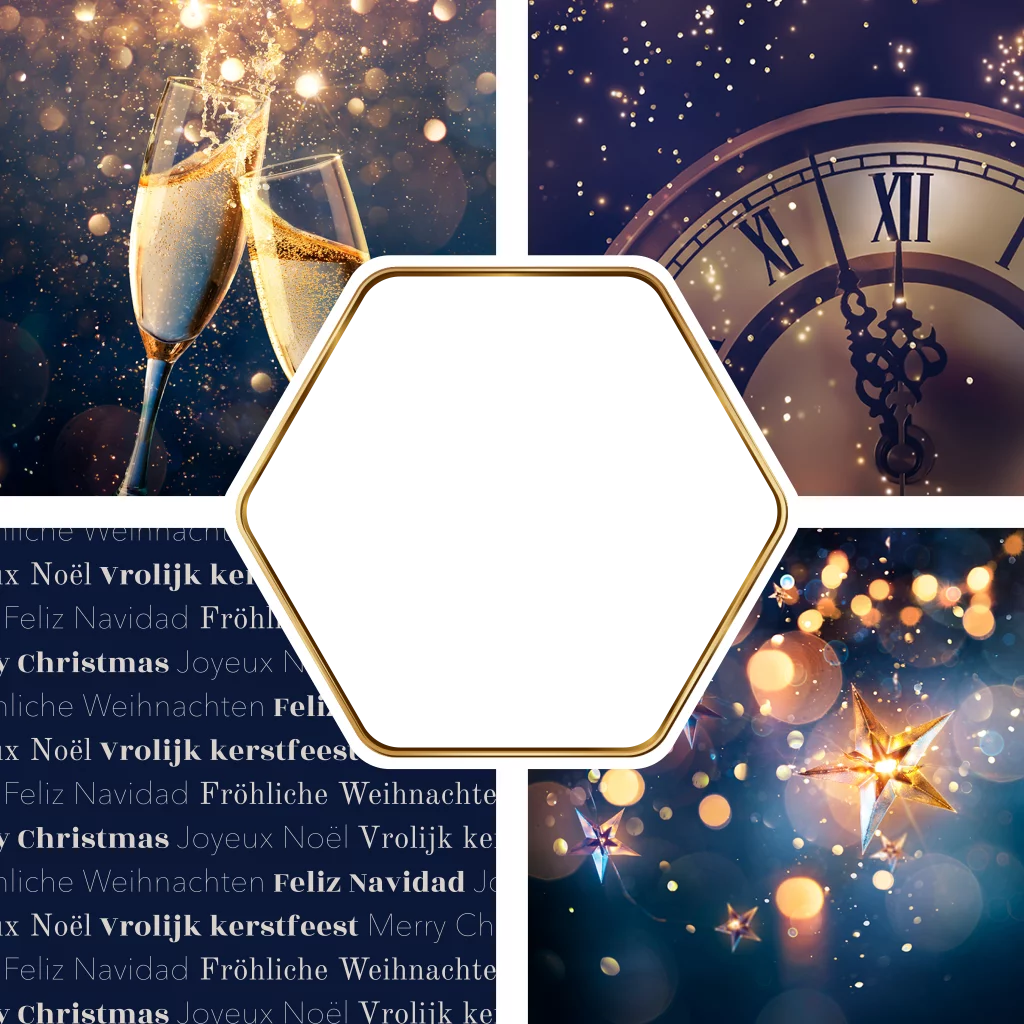 Kerstkaart zakelijk 2026 met uitsnede, champagneglazen en logo
