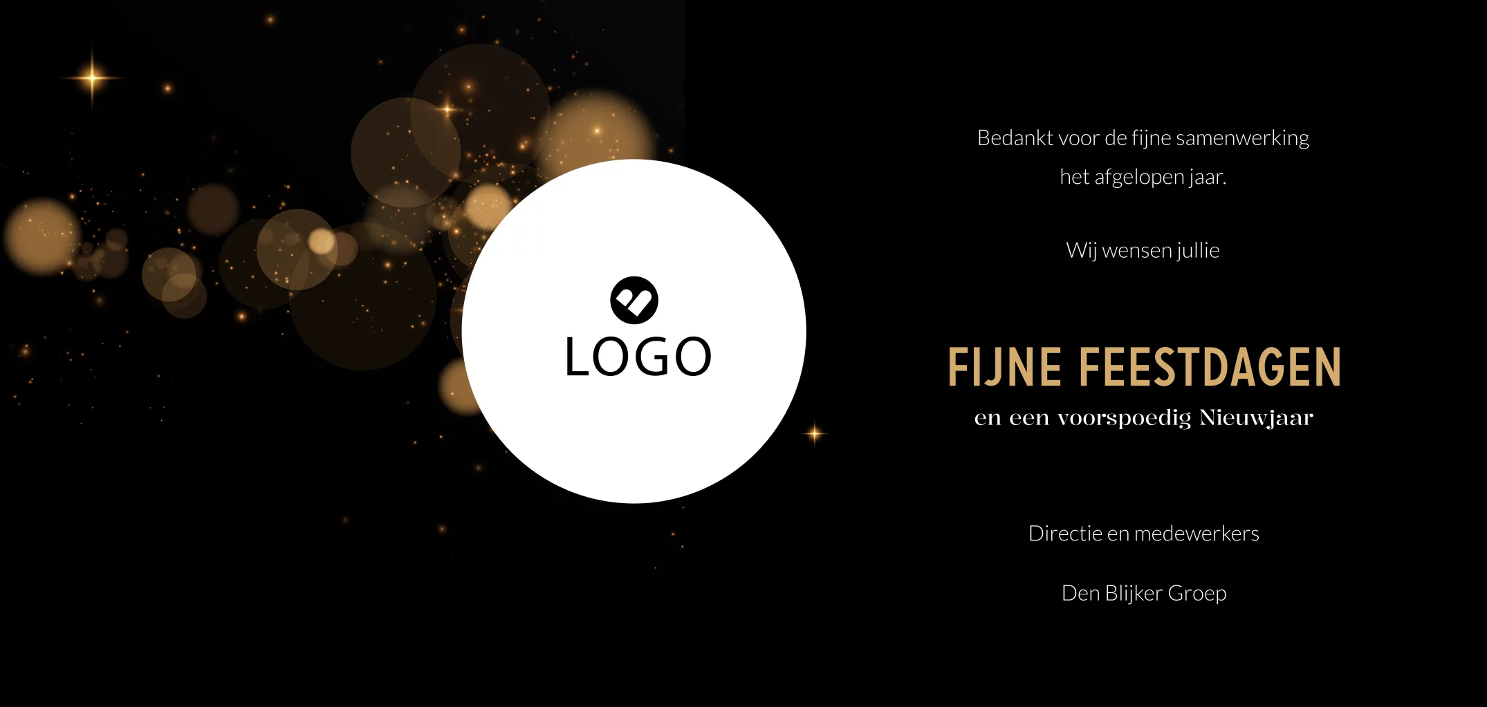 Zakelijke internationale kerstkaart met uitsnede. Deze zakelijke kerstkaart is geschikt voor de internationale branche. Wens je klanten in hun eigen taal fijne feestdagen. De kaart is feestelijk door de zwarte achtergrond met gouden decoratie. Extra opvallend is het gouden jaartal 2026 waarvan de nul een uitsnede is en een doorkijkje geeft naar de binnenkant van de kaart. Zet hier je eigen bedrijfslogo neer. Je zal met deze kerstkaart zeker indruk maken op je klanten en zakenrelaties.