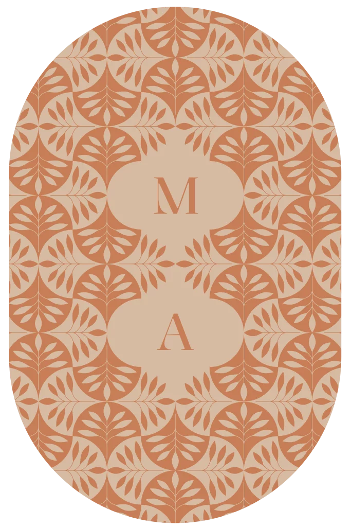 Unieke trouwkaart in een aparte vorm, voor jullie als uniek liefdeskoppel. Deze moderne huwelijksuitnodiging met een botanisch patroon in retro oranje kleuren is gesneden in een ovale vorm. Kleuren en lettertypes kun je aanpassen in de editor. Hulp nodig? Mail, chat of bel ons gerust.
