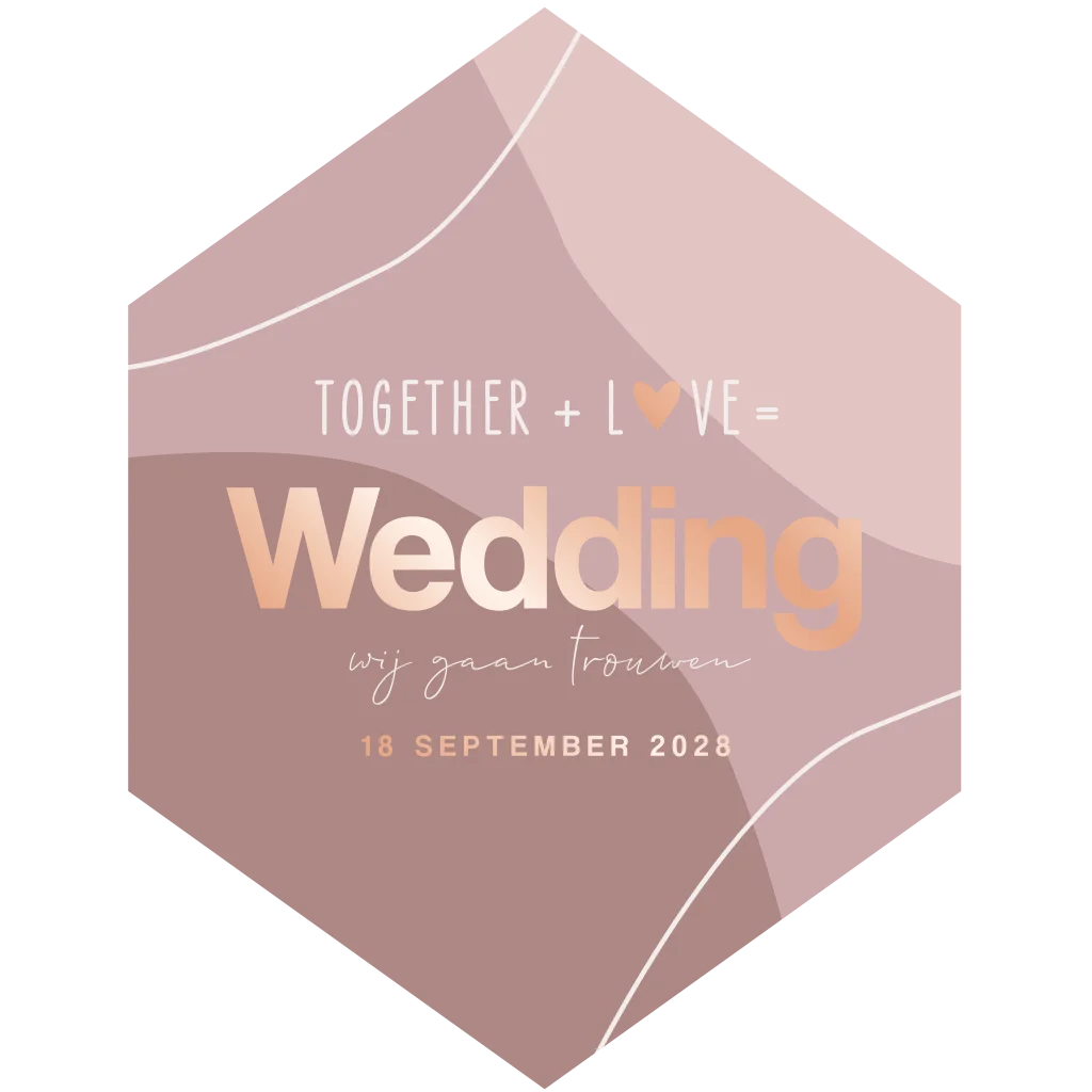 Op zoek naar een unieke trouwkaart in een originele vorm? Kies dan voor deze kaart, welke is gesneden in de vorm van een hexagon! Op deze zeshoekige huwelijksuitnodiging abstracte lijnen en vlakken in stijlvolle trendkleuren. De kaart is voorzien van roséfolie, wat het echt een luxe uitstraling geeft. Liever een andere (folie)kleur? De kleuren pas je eenvoudig aan in onze editor. Vragen of hulp nodig? Laat het ons weten!