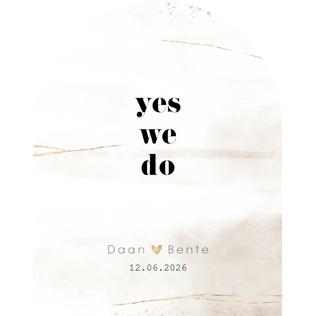 Rustige trouwkaart in boog vorm met Yes we do