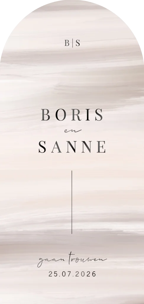 Trouwkaart in boog vorm met foliedruk en verfstrepen