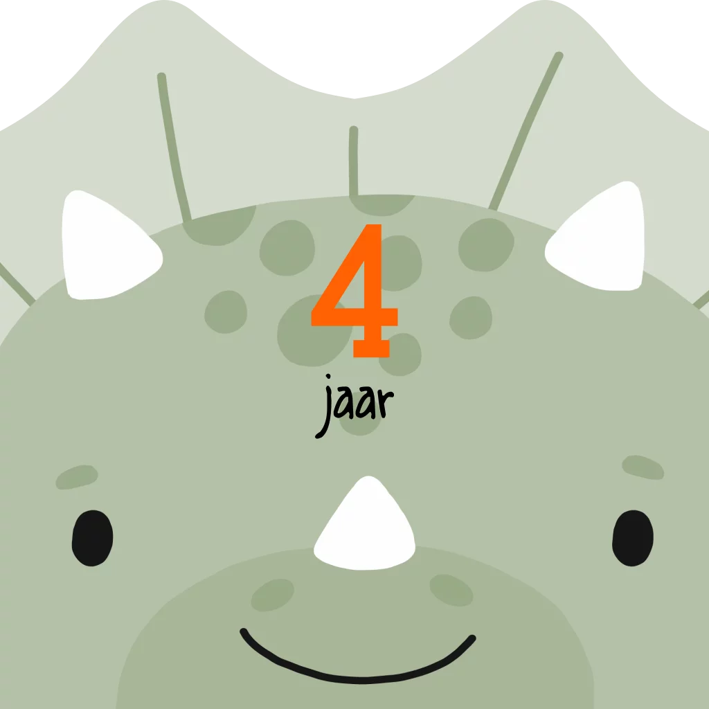 Unieke uitnodiging voor het kinderfeestje van een jongetje! Met de schattige dino kop en de vrolijke groene kleur is deze uitnodiging een echte eyecatcher. Vier met deze leuke uitnodiging de vierde verjaardag van jullie zoon.