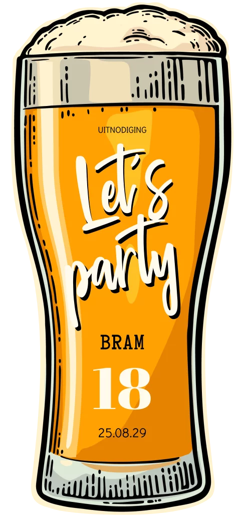 Uitnodiging 18 jaar verjaardag in de vorm van een bierglas