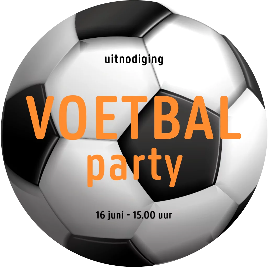 Een unieke uitnodiging voor een voetbal party in aparte vorm. Deze kaart heeft namelijk de vorm van een voetbal! De toevoeging van de kleur oranje maakt dit kaartje zeker ook geschikt voor het EK voetbal, zoals een EK voetbalkijkfeestje. Nodig met deze originele ronde uitnodiging alle voetbalfans uit voor jouw voetbalfeestje.
