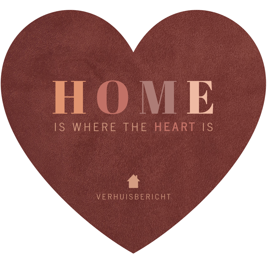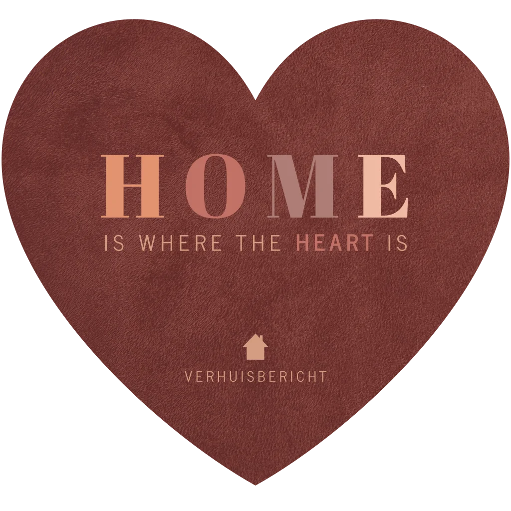 "Home is where the heart is!" Hoe leuk is het om jullie nieuwe adres aan iedereen kenbaar te maken met deze verhuiskaart in hart vorm? Op de achtergrond een trendy donkerrode kleur met lederlook. Voeg je persoonlijke tekst toe op de achterzijde, ook kun je hier een uitnodiging voor een housewarming toevoegen. De kleuren en lettertypes kun je aanpassen in de editor. Hulp nodig? Laat het maar weten!