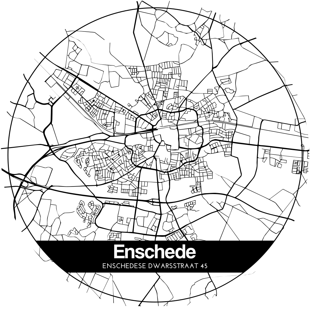 Verhuiskaart plattegrond Enschede in ronde vorm