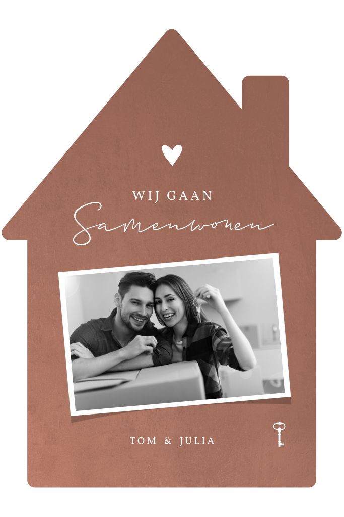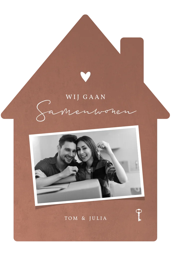 Gaan jullie verhuizen? Of samenwonen? En willen jullie dit met een originele kaart laten weten? Kies dan voor deze verhuiskaart, gesneden in de vorm van een huisje. Net even wat anders dan anders!