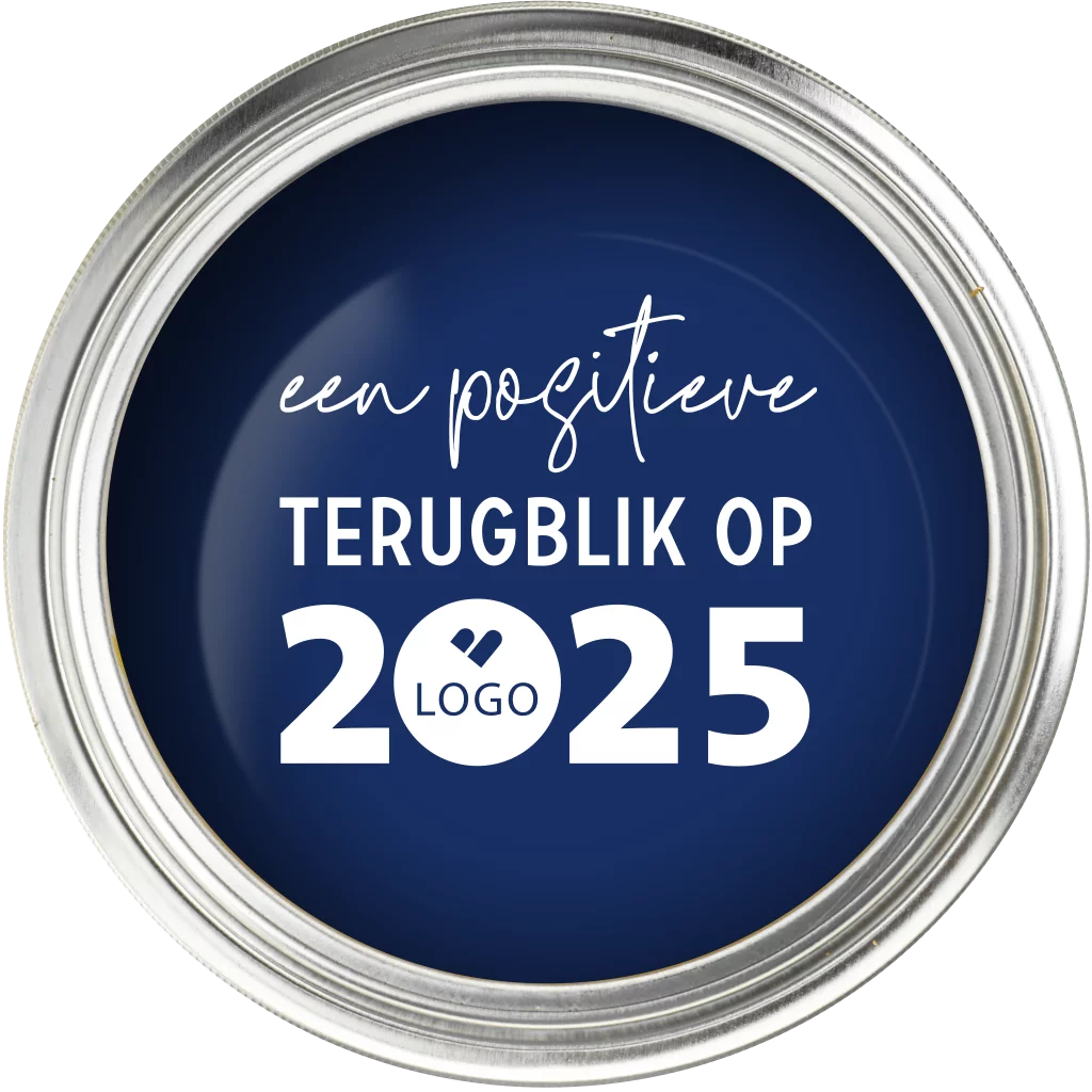 Bedank al je zakelijke relaties, medewerkers en klanten voor het afgelopen jaar en wens ze fijne feestdagen toe met deze unieke zakelijke kerstkaart. Deze kaart is speciaal ontworpen voor de verfbranche zoals een schildersbedrijf. Uniek aan deze kerstkaart is de ronde vorm, waardoor deze op een verfblik lijkt. Pas de kleur verf aan naar je eigen smaak! Zet in de nul van het jaartal 2026 je eigen logo.