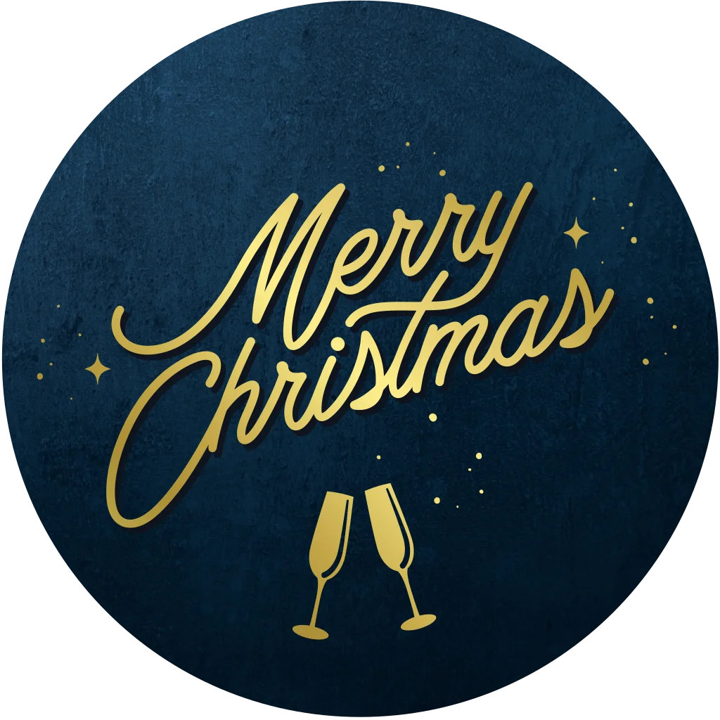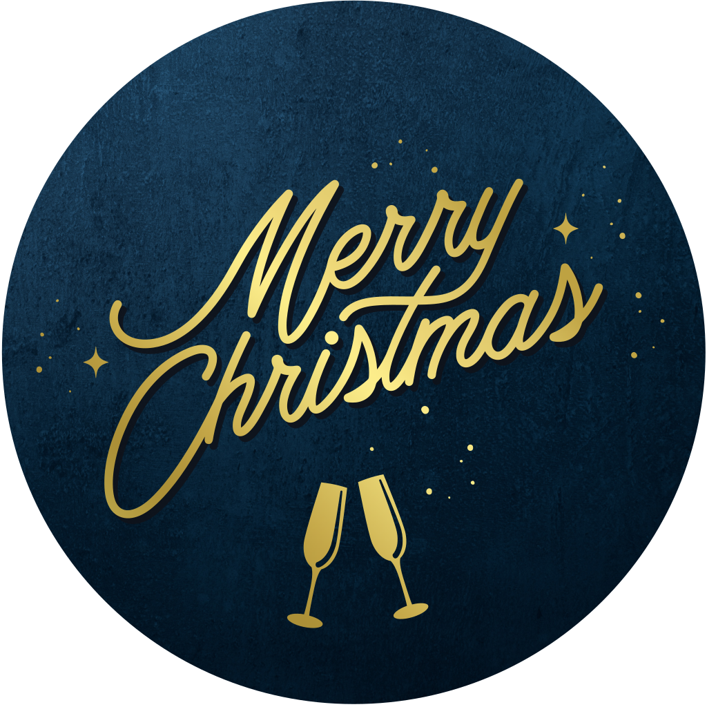 Wens je zakelijke relaties, medewerkers en klanten fijne feestdagen met deze luxe zakelijke kerstkaart. Uniek aan deze kerstkaart is de aparte vorm, namelijk de vorm van cirkel en het gebruik van écht foliedruk. De tekst Merry Christmas, de proostende champagneglazen en de spetters en sterren worden gedrukt in goudfolie. Deze springen er hierdoor extra uit tegen de ruwe donkerblauwe achtergrond. De afbeelding van het logo op de achterzijde dient als voorbeeld en wordt niet gedrukt. Deze kun je verwijderen of plaats hier je eigen logo overheen.