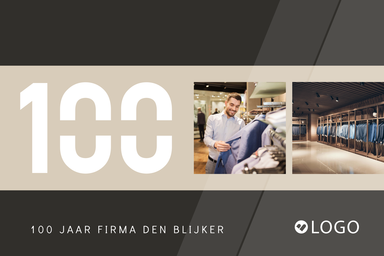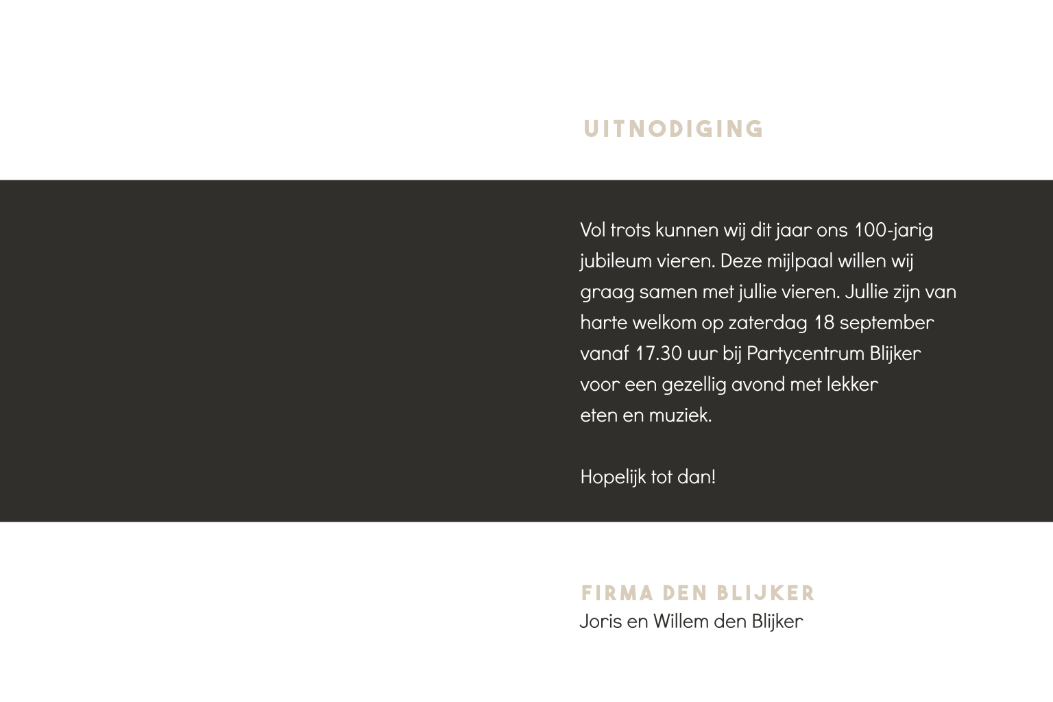 Strakke 100-jarig zakelijk jubileum uitnodiging met foto en uitsnede