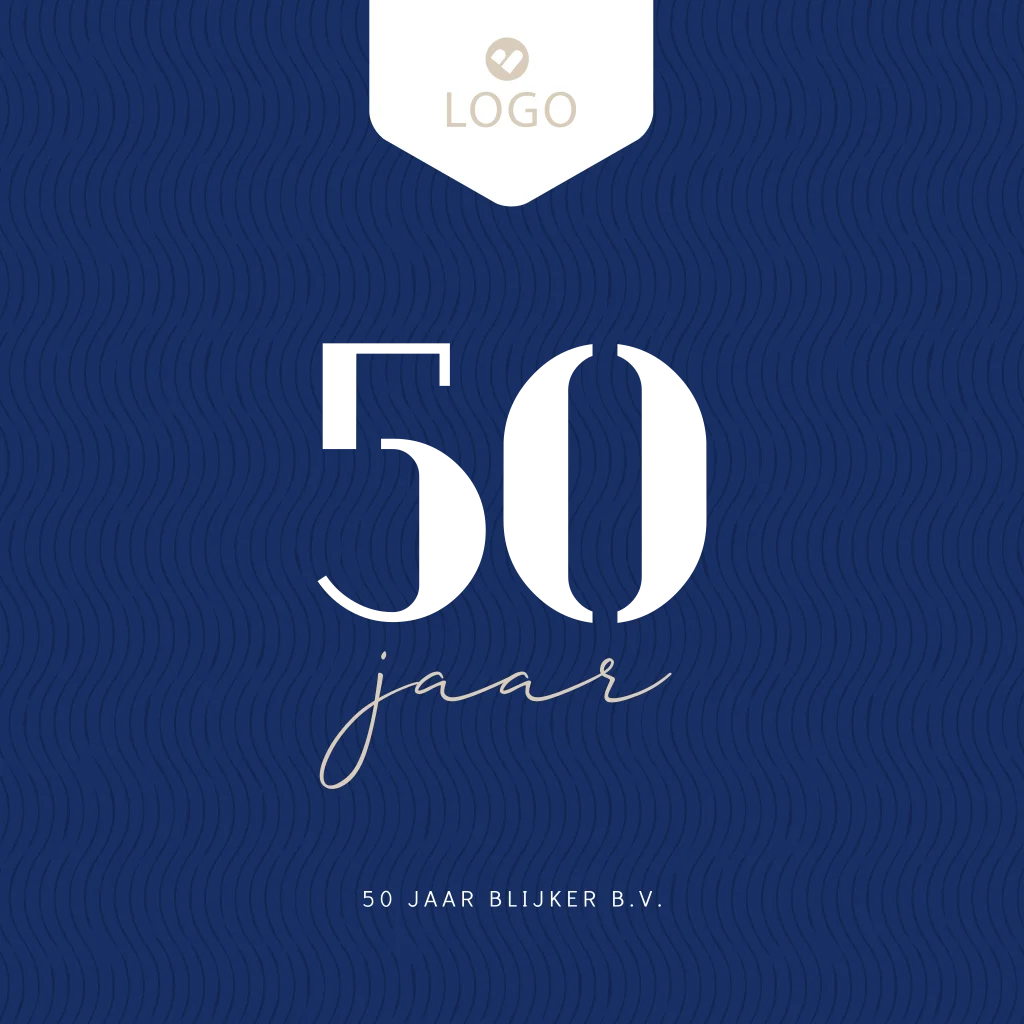 Zakelijke jubileumkaart om een 50-jarig zakelijk jubileum te vieren. Deze uitnodiging heeft een strak design met ruimte voor je eigen bedrijfslogo. Bijzonder aan deze jubileumkaart is dat het cijfer 50 wordt uitgesneden.