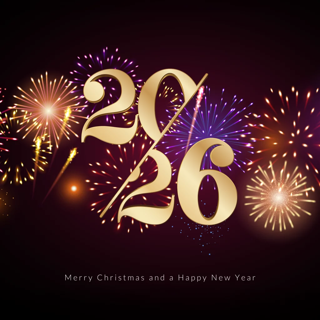 Feestelijke zakelijke kerstkaart met vuurwerk en goudlook. Deze kerstkaart met glitters en sparkles geeft gelijk een feestelijk kerstgevoel. Op de kerstkaart staat het jaartal groot in een goudlook tint. Hierdoor is deze zakelijke kerstkaart geschikt voor verschillende branches