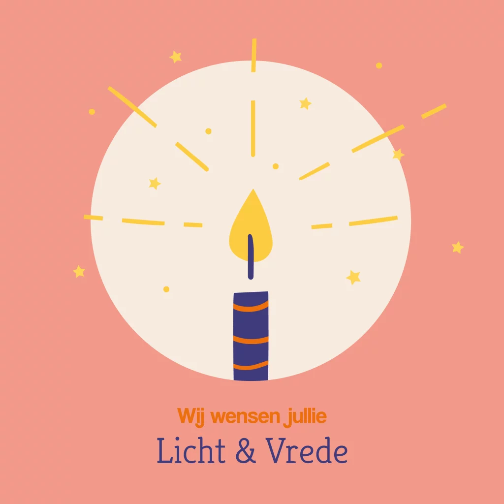 Wens familie, vrienden en kennissen Licht & Vrede met deze christelijke kerstkaart. Op deze hippe kerstkaart een roze achtergrond met daarvoor een kerst kaars.