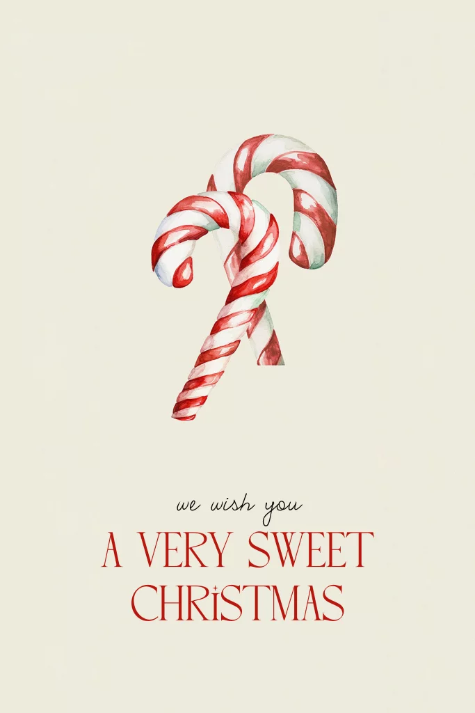 Een toffe kerstkaart met twee zuurstokken en ronde hoeken. Een gevoel van nostalgie roept deze kerstkaart op. Wens de ontvanger een very sweet christmas en maak deze kerstkaart helemaal af met de metallic rode envelop.