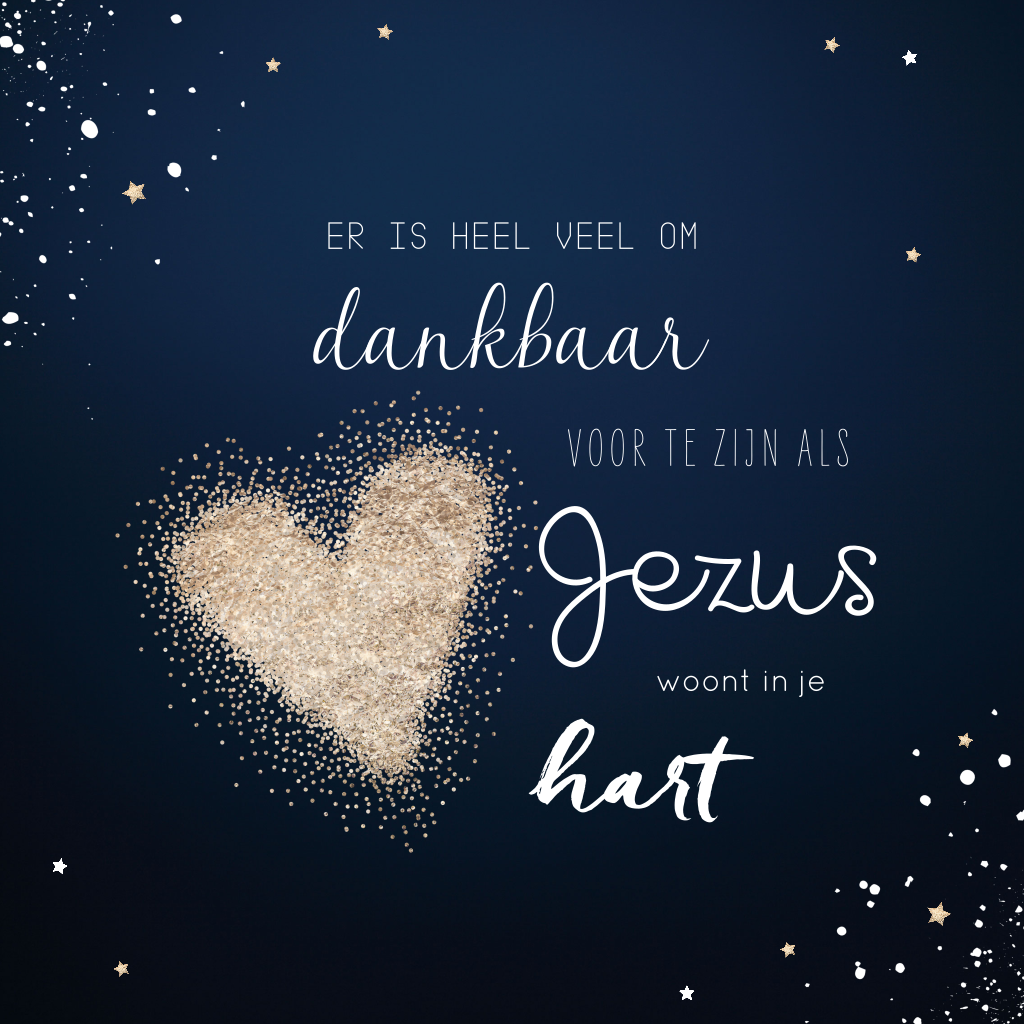 Moderne christelijke kerstkaart met een groot hart en de volgende tekst "Er is heel veel om dankbaar voor te zijn als Jezus woont in je hart" Bij deze religieuze tekst is gebruik gemaakt van verschillende lettertypes. Pas de kaart naar je eigen smaak aan in de editor.