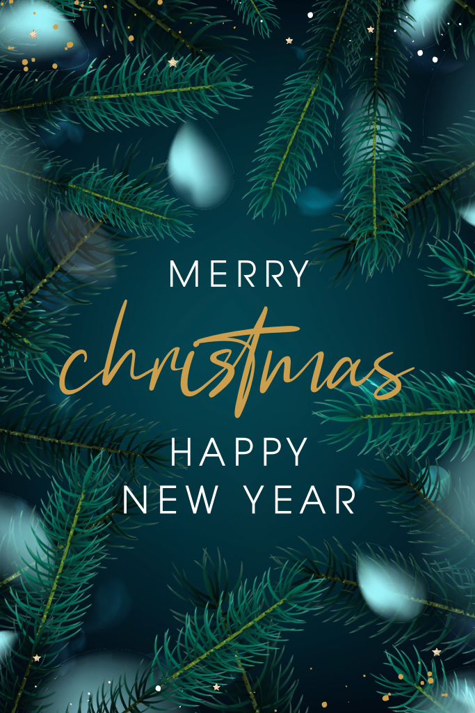 Kerstkaart met een trendy achtergrond met dennentakjes.