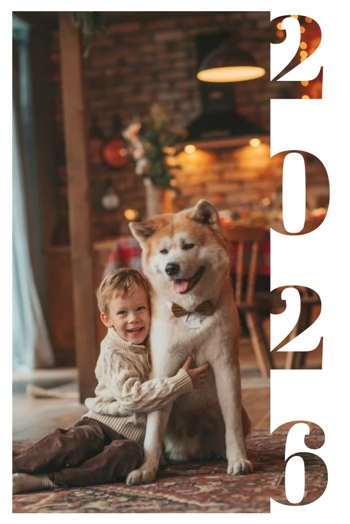Kerstkaart met eigen foto en jaartal 2026
