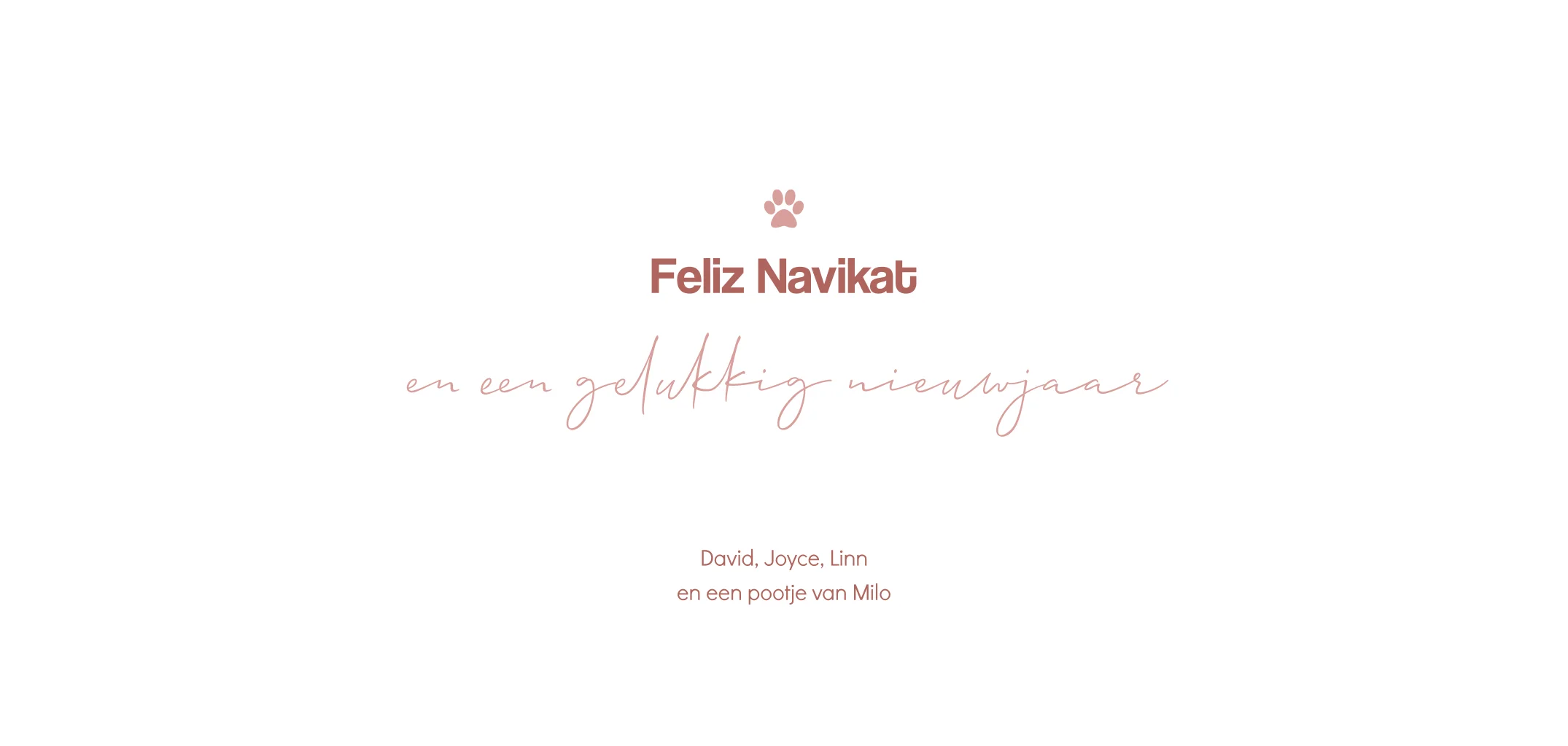 Grappige kerstkaart in trendy kleuren. Wens met deze hippe kerstkaart je familie en vrienden een Feliz Navikat en een Gelukkig Nieuwjaar. Op deze kaart een trendy beige achtergrond met sneeuw en een illustratie van een kat met een kerstslinger van lampjes. Kleuren en lettertypes zijn aan te passen in de editor.