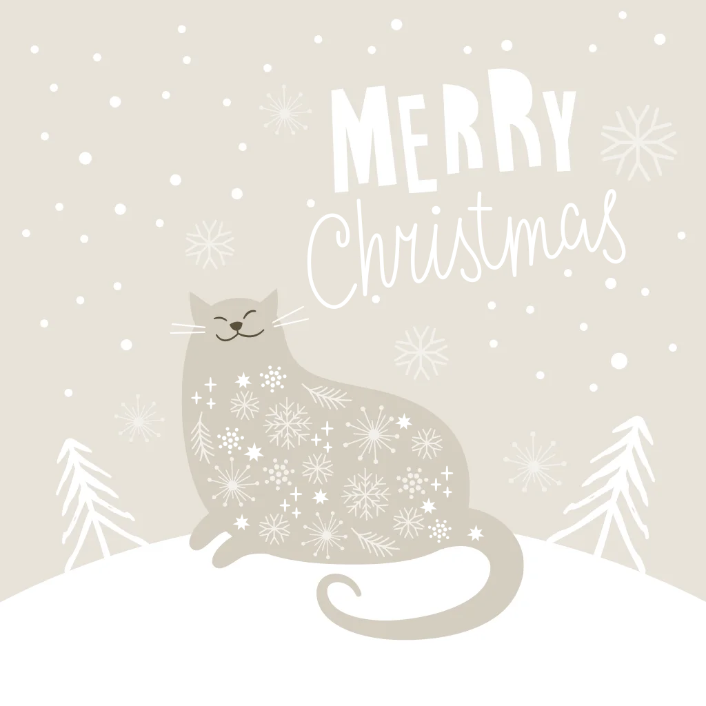 Hippe beige kerstkaart met kat. Deze kerstkaart is feestelijk en winters door de sneeuw en kerstbomen. Op de bult sneeuw zit een lieve kat. Deze kaart is daarom perfect voor echte kattenliefhebbers! De witte tekst en gouden accenten zijn een mooie combinatie met de beige achtergrond. Pas deze kaart naar je eigen smaak aan in de editor.