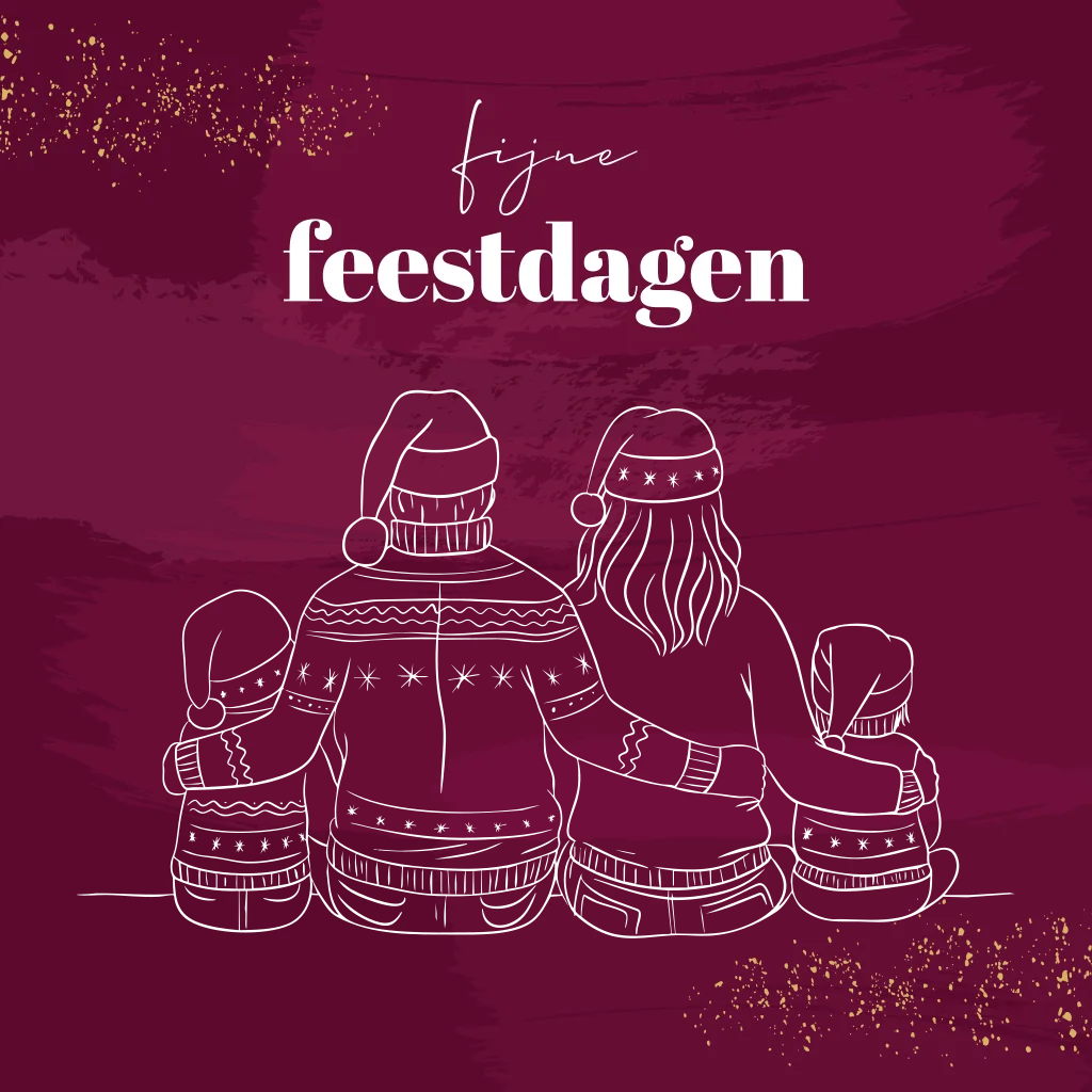 Wens je vrienden en familie een fijne kerst met deze hippe kerstkaart met een prachtige lijntekening. Op de lijntekening zie je twee ouders met twee kindjes. Het goudfolie geeft een extra vleugje luxe aan deze kerstkaart. Teksten, lettertypes en kleuren zijn naar je eigen smaak aan te passen in de editor. Een lijntekening op maat? Stuur ons gerust een berichtje!