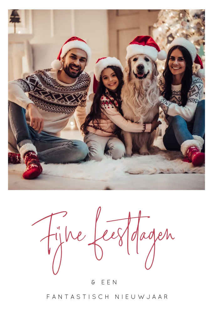 Basic kerstkaart met een rustige uitstraling. Voeg je eigen persoonlijke foto toe. Op deze kaart is gebruik gemaakt van een speels en sierlijk lettertype. Hulp nodig bij het opmaken van de kaart? Dan helpen we je er graag bij.