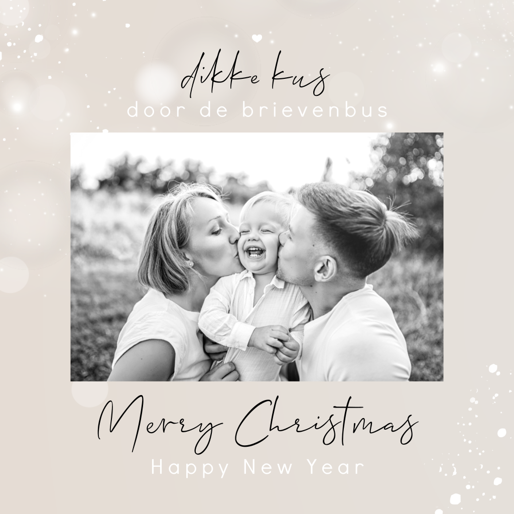Dikke kus door de brievenbus! Hippe foto kerstkaart met lieve groet en kerstwens. Voeg een eigen foto toe en maak er zo een persoonlijke en originele kaart van. Teksten en kleuren zijn aan te passen in editor.