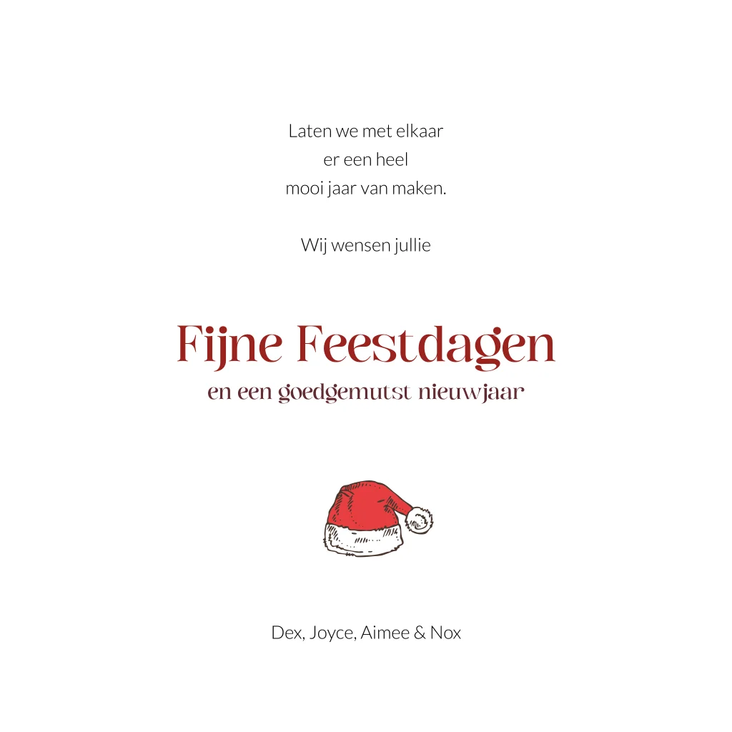 Wens de ontvanger van deze grappige kerstkaart fijne feestdagen en een goedgemutst nieuwjaar toe! Maak een eigen kerstfoto en voeg deze toe in het fotokader. Gebruik de grappige kerst props om de kerstfoto op te laten vallen. Deze kerstkaart is makkelijk aan te passen in onze online editor en heeft een toffe gestreepte achtergrond in rode kleurtinten. Hulp nodig bij het aanpassen van deze kerstkaart? Wij helpen je graag verder.