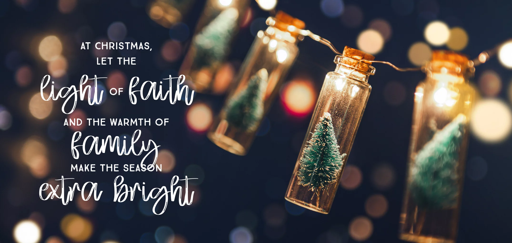 Op zoek naar een christelijke kerstkaart die perfect past bij de feestdagen? Ontdek dan deze prachtige kerstkaart met een sfeervolle foto van kerstlampjes. Op deze kerstkaart zie je de christelijke tekst 'At christmas let the light of faith and the warmth of family make the season extra bright' staan. Pas deze kerstkaart naar eigen wens aan in onze online editor en maak van jullie kerstgroet een onvergetelijk moment. Hulp nodig? Ons team staat voor je klaar.