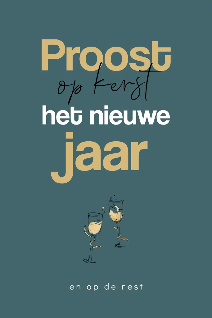 Stijlvolle en basic kaart om familie en vrienden een fijn en gelukkig nieuwjaar te wensen. Deze basic kerstkaart heeft een hippe tekst en feestelijke proostende glazen. Kleuren en teksten zijn aan te passen in de editor.