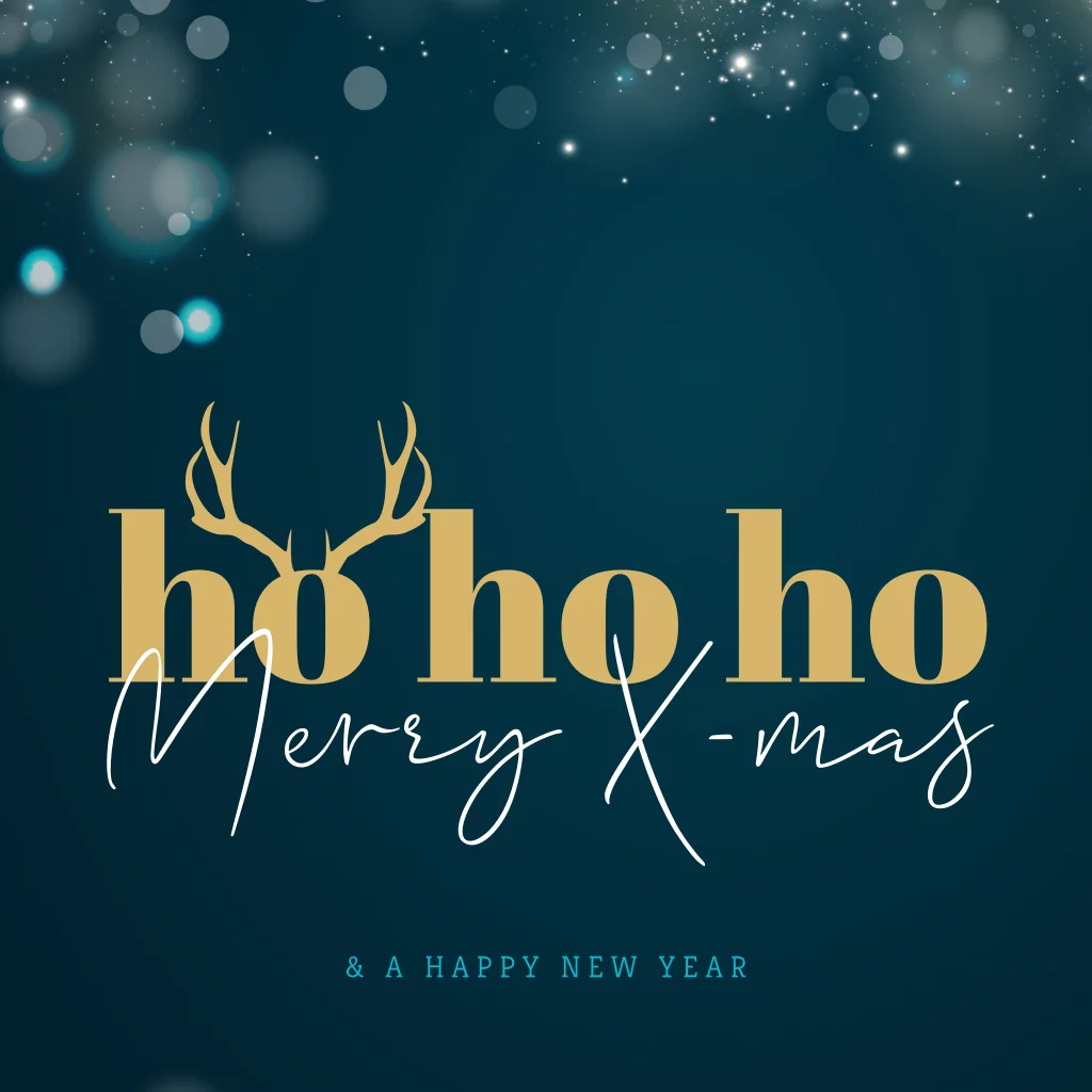 Hippe kerstkaart om je familie en vrienden een fijne kerst toe te wensen. Deze kaart, met de tekst " ho ho ho", heeft een sprankelende achtergrond. Pas de kaart naar je eigen wensen aan in de editor.