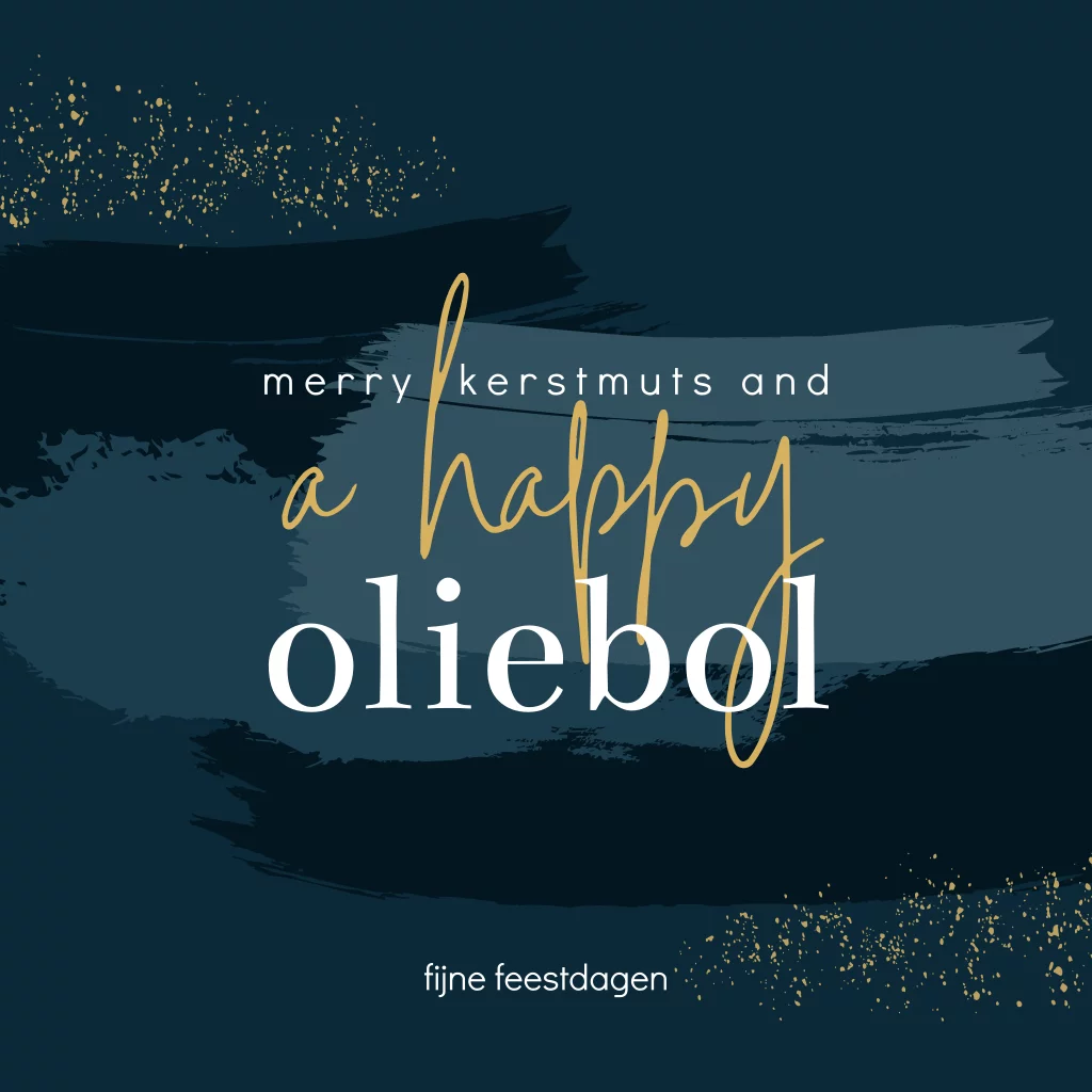 Wens je vrienden en familie een fijne kerst met deze hippe kerstkaart met de grappige tekst "merry kerstmuts and a happy oliebol" Teksten, lettertypes en kleuren zijn naar je eigen smaak aan te passen in de editor.