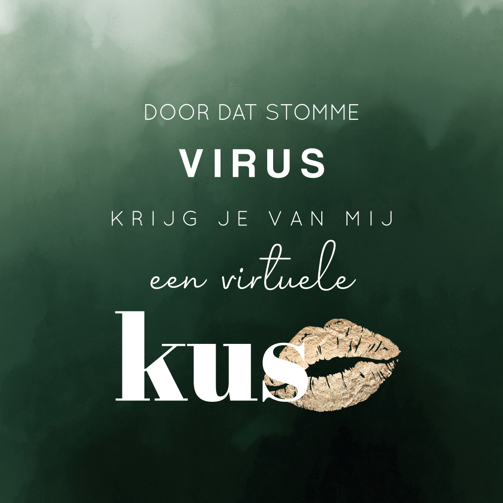 Verstuur een virtuele kus met deze grappige kerstkaart. Op deze corona kerstkaart staat de tekst: Door dat stomme virus krijg je van mij een virtuele kus. Pas de kaart naar je eigen smaak aan in de editor.