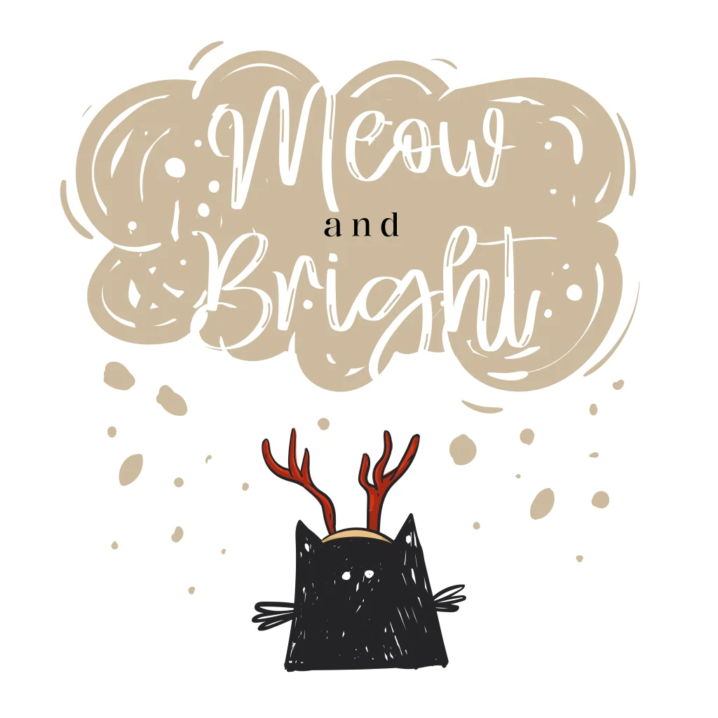Wens je familie en vrienden een Meow New Year met deze kerstkaart met poes. Echt een kerstkaart voor mensen met een kat of poes. De poes heeft een gewei op.