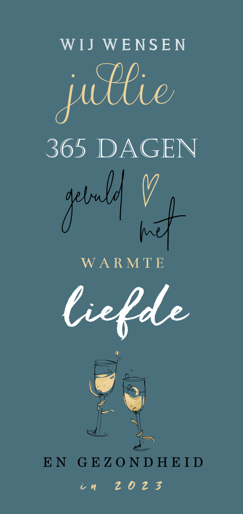Handlettering kerstkaart met op de voorzijde een mooie kerstwens in verschillende lettertypes en doodle glazen. De teksten en kleuren zijn aan te passen in de editor.