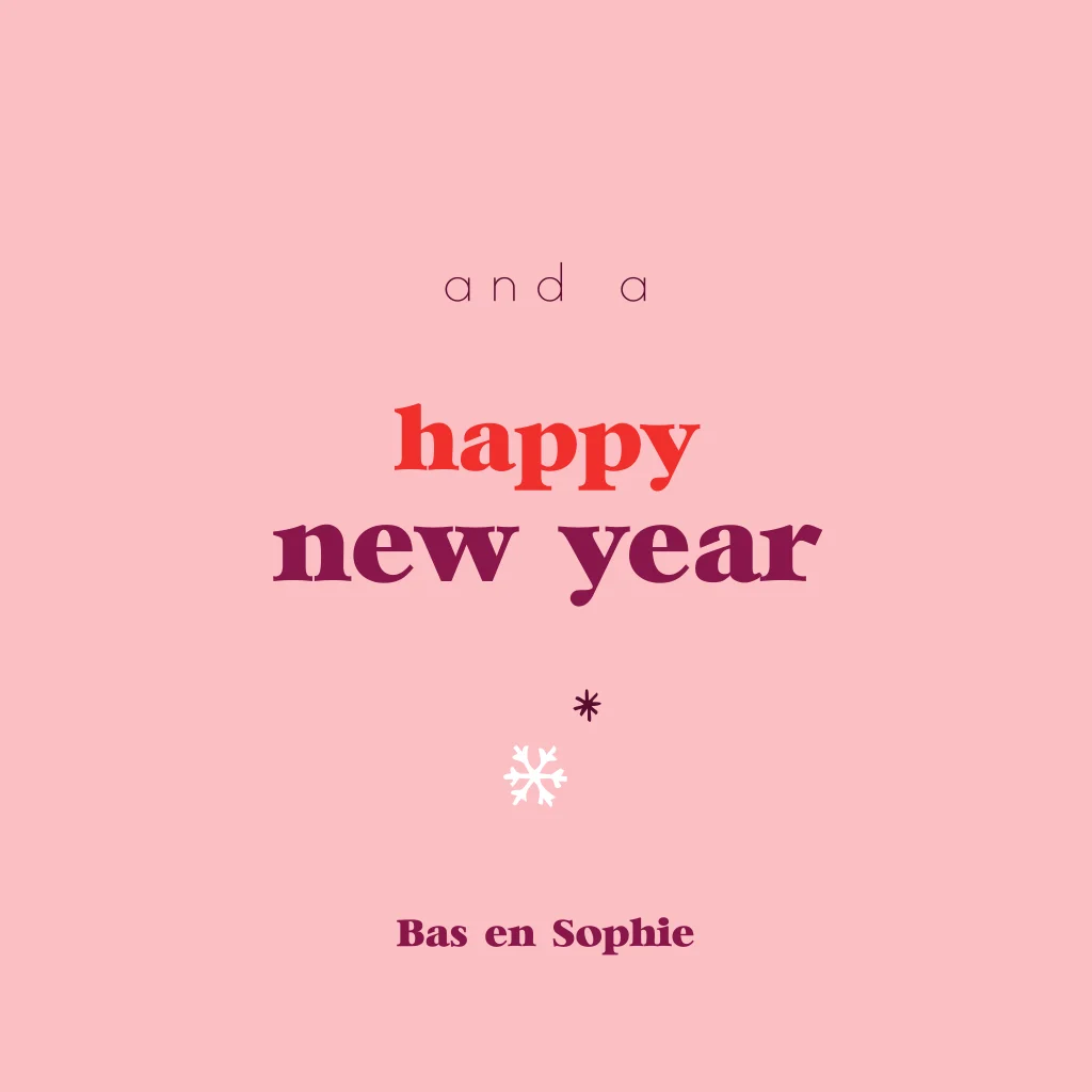 Kleurrijke kerstkaart met de tekst Merry Christmas in speelse letters. Pas deze vrolijke en hippe kerstkaart eenvoudig aan in de editor.