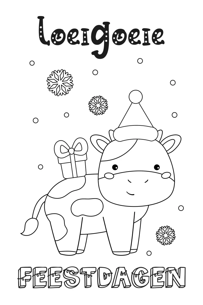 Loeigoeie koe kerstkaart voor de feestdagen zelf inkleuren