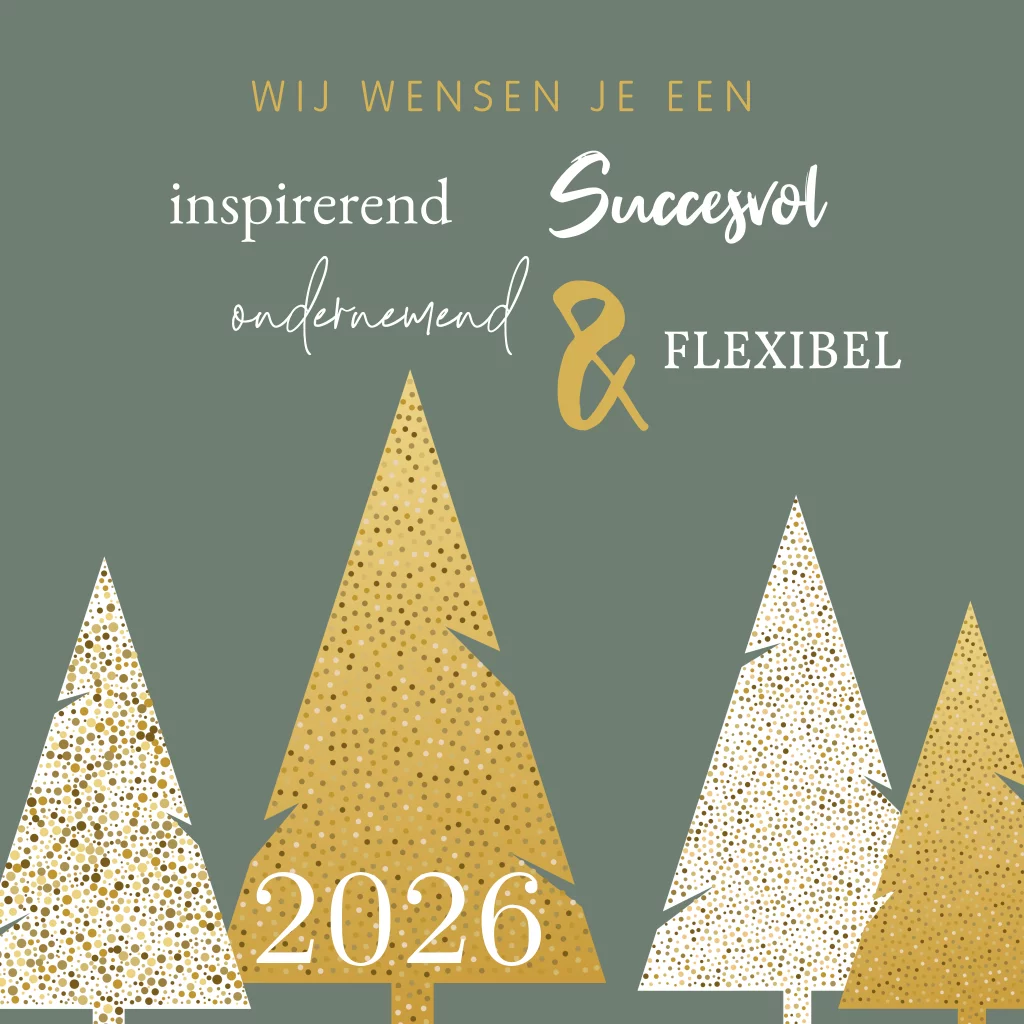 zakelijke kerstkaart met kerstbomen en inspirerende tekst