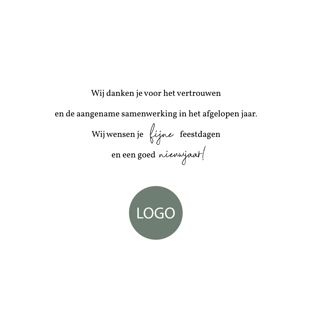 Deze zakelijke kerstkaart is voor elke sector te gebruiken. Binnenin de kaart is er een mogelijkheid voor een persoonlijk tekst en is er ruimte voor een logo.