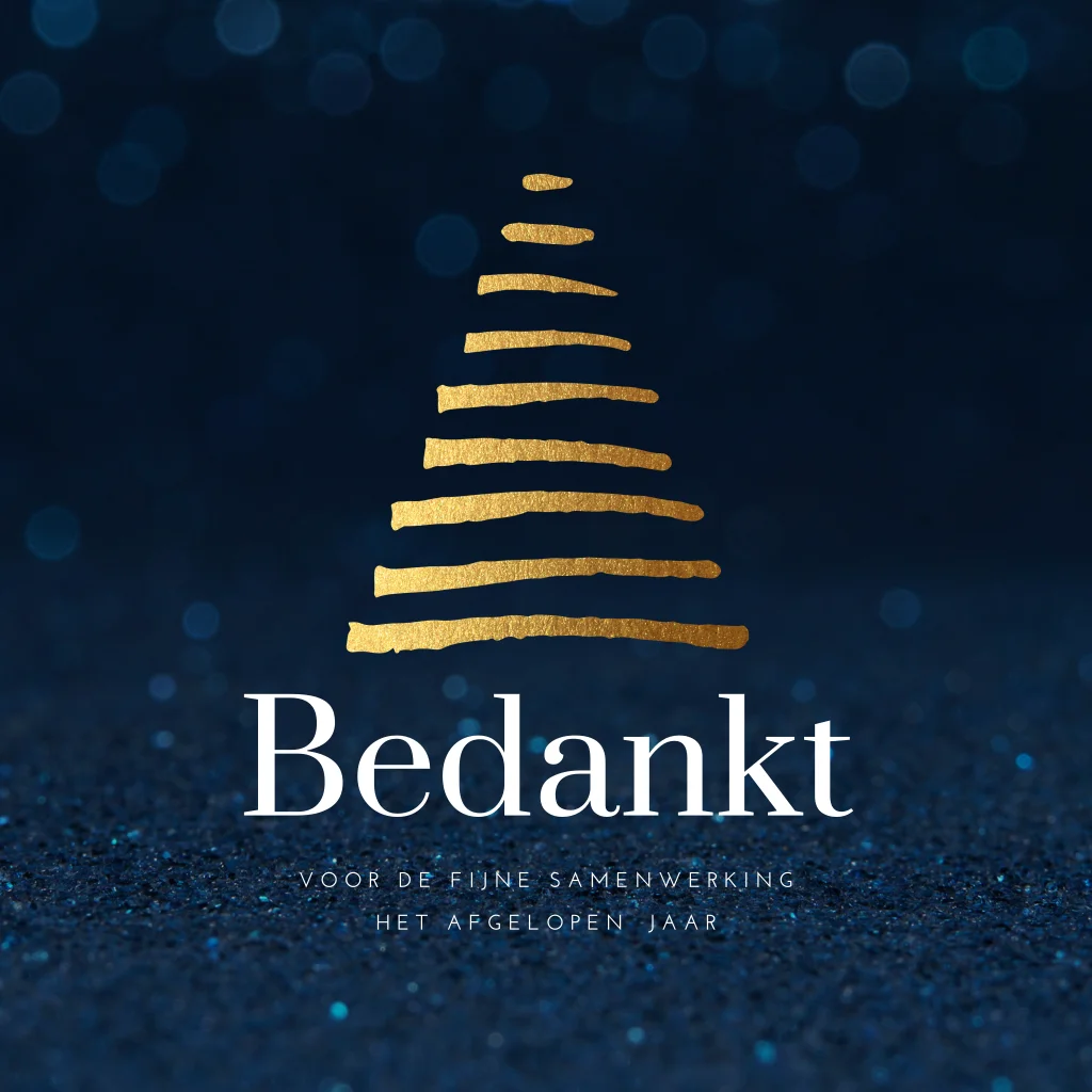 Deze zakelijke kerstkaart heeft een gouden kerstboom op de voorkant. Deze kaart is voor veel bedrijven te gebruiken. Binnenin de kaart kom de kerstboom nog weer terug maar dan niet meer in het goud. binnenin de kaart is er ruimte voor een logo.