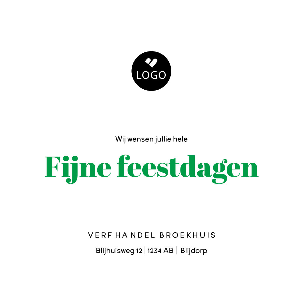 Deze kleurrijke zakelijke kerstkaart is voor veel bedrijven geschikt. Op de binnenzijde is ruimte om een eigen bedrijfslogo toe te voegen.