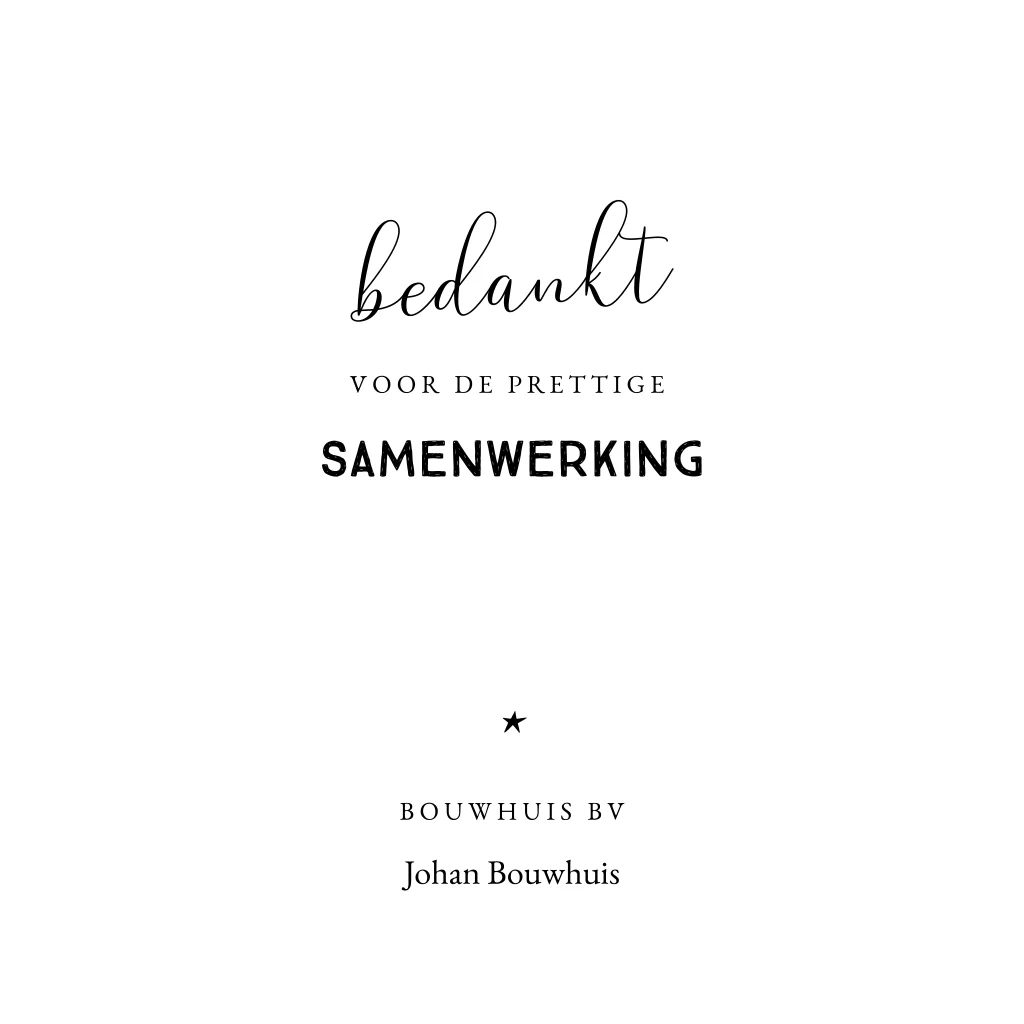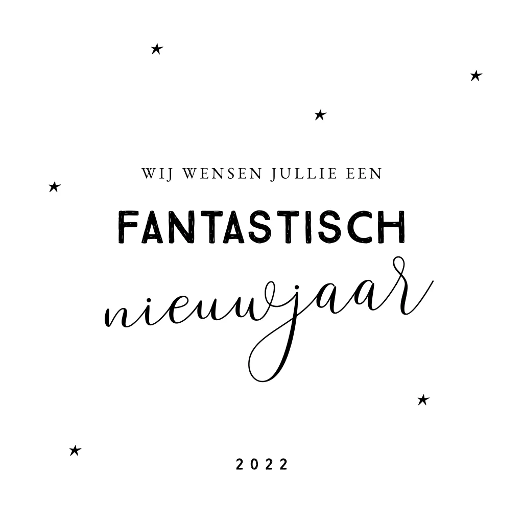 Zakelijke kerstkaart in zwart wit die vrijwel voor iedere sector te gebruiken is. Er zijn verschillende lettertypes gebruikt en de kaart is gedecoreerd met kleine sterretjes.