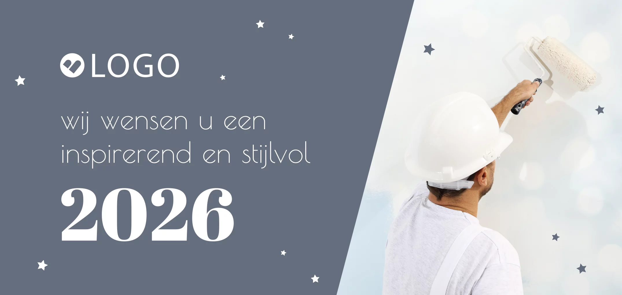 Frisse zakelijke kerstkaart voor een schildersbedrijf. Op de achterzijde is er ruimte voor een bedrijfs logo en een persoonlijke boodschap. Deze kaart is goed te gebruiken voor een andere sector. Voeg eenvoudig eigen foto's toe in onze editor.