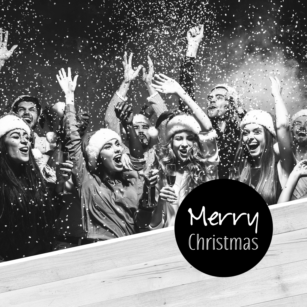 Zakelijke kerstkaart met een foto van het eigen personeel. Hiermee krijgt de zakelijke kaart een persoonlijk tintje. Deze kaart is niet alleen voor de zorg of dienstverlening maar voor elke branche te gebruiken.