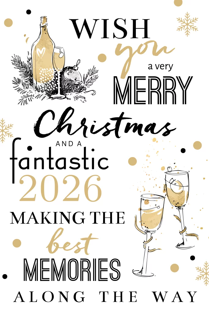 Handlettering zakelijke kerstkaart met Engelse tekst en champagne